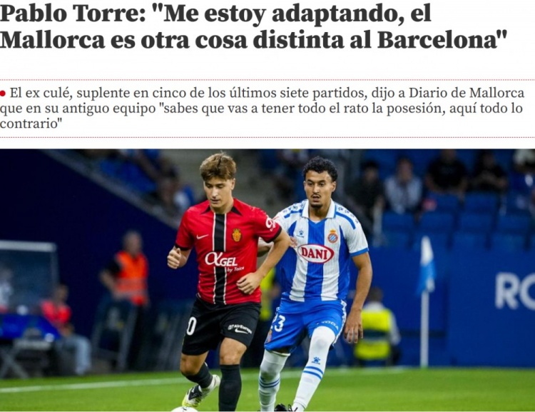 11月17日讯 巴勃罗·托雷今夏从巴塞罗那加盟马洛卡,被视为球队的紧迫引援。底本托雷在巴萨出场时分不及的情况,并未在马洛卡得到昭着改善。日前,托雷给与了《马洛卡日报》的采访。