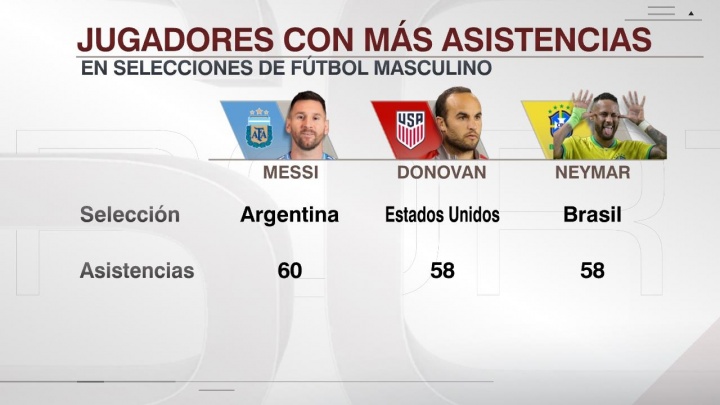 据ESPN阿根廷统计梅西如故在阿根廷队送出了60次助攻,越过内马尔和多诺万的58次,成为历史国度队助攻王。