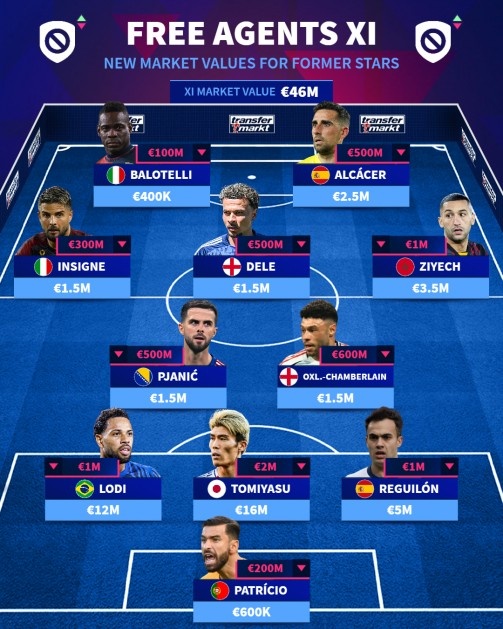 中场:皮亚尼奇150万欧、张伯伦150万欧、因西涅150万欧、阿里150万欧、王人耶赫350万欧
