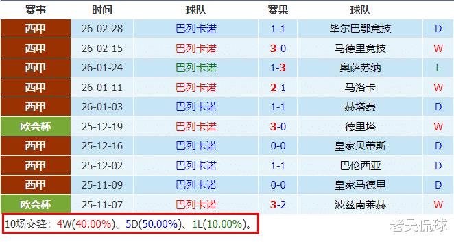 巴列卡诺主场攻守平衡,近3场不败,终结4连败3连输指数,上一场打平终结3连赢指数,输赢指数相间,主场10场1负,输赢指数相间,一度9场不败,主场多平局胜率不高,不比客场好多少。