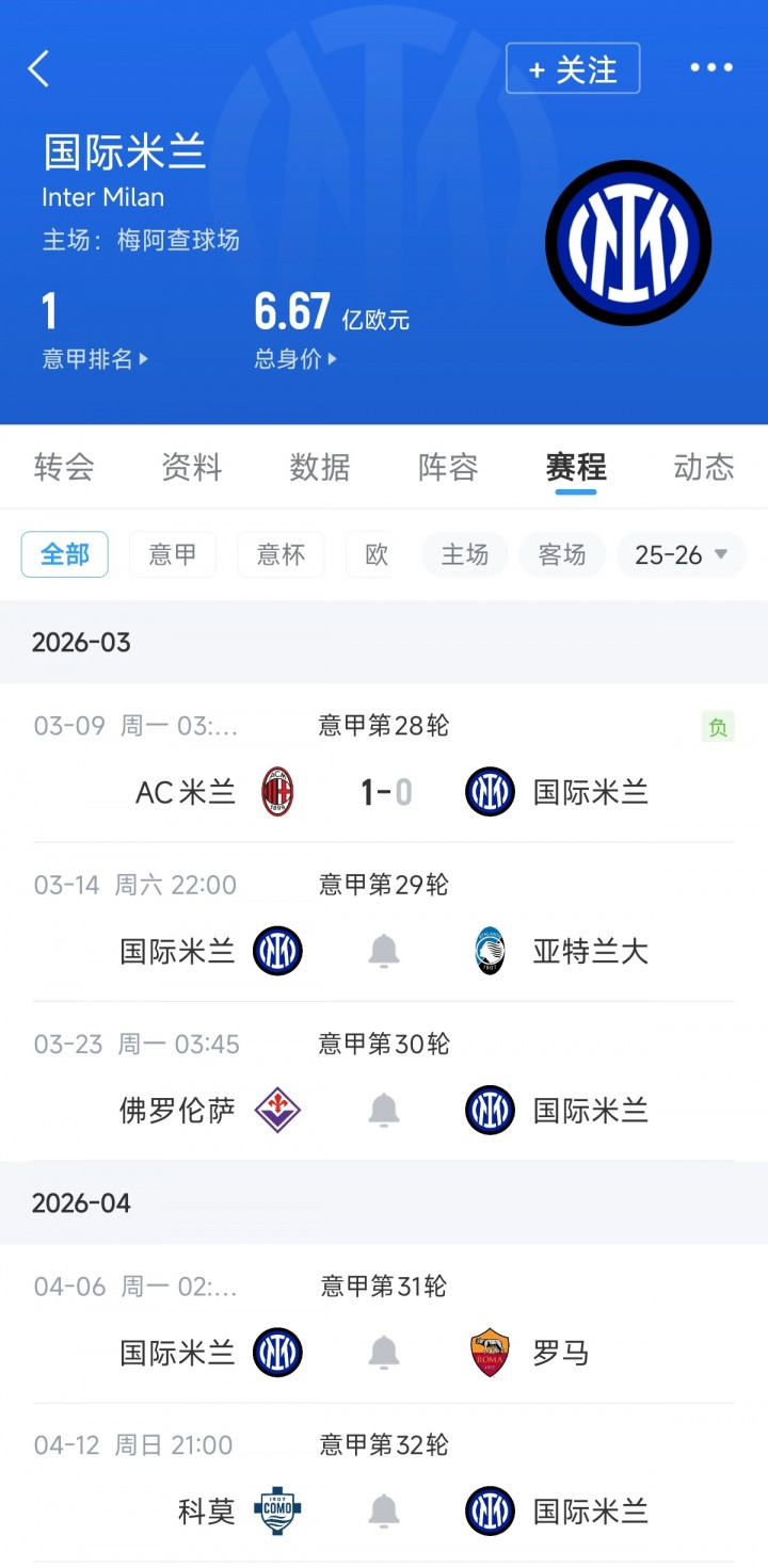 国米近期的魔鬼赛程,第一场就先丢了3分。接下来4轮,国米将先后对阵亚特兰大、佛罗伦萨、罗马和科莫。