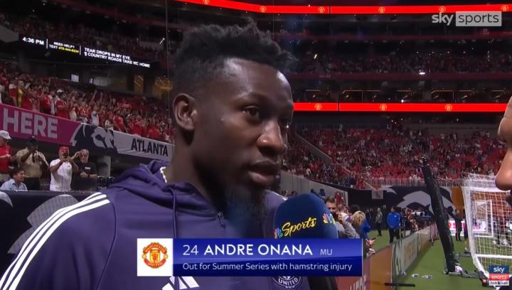 直播吧08月04日讯 由于遭逢伤病困扰,曼联门将奥纳纳今夏莫得过问球队的季前赛。在曼联2-2战平埃弗顿的比赛前,奥纳纳在场边禁受了天外体育的采访。