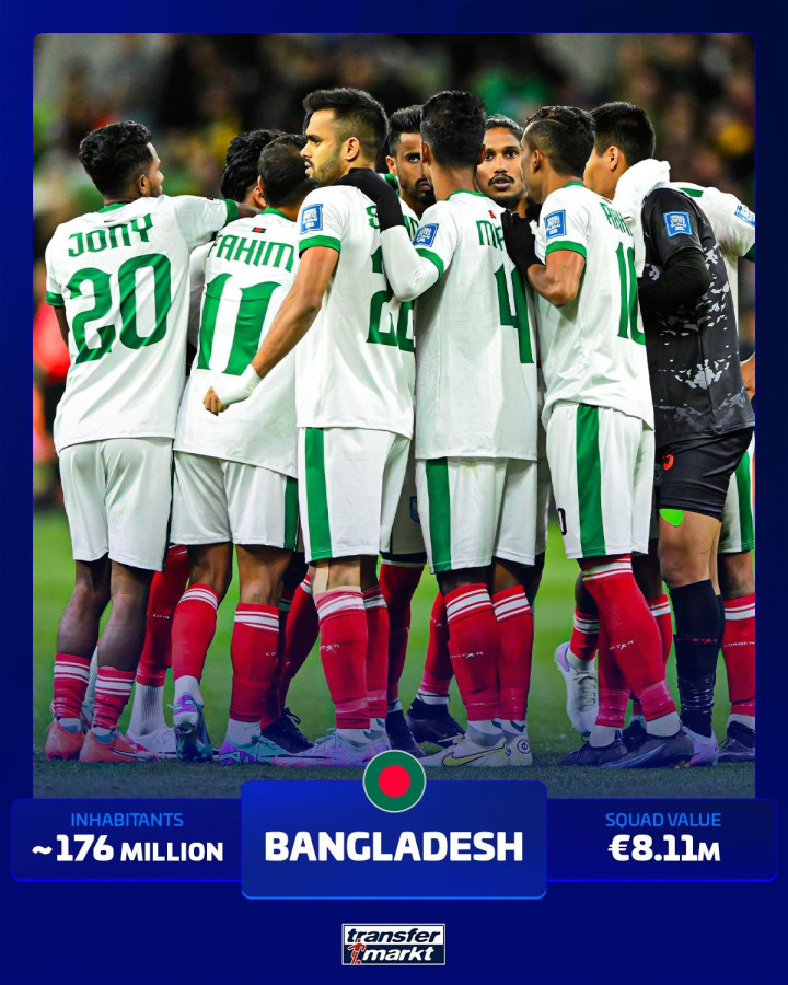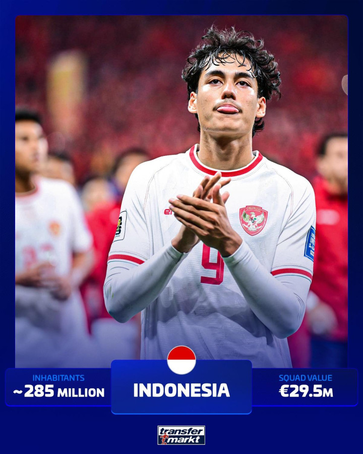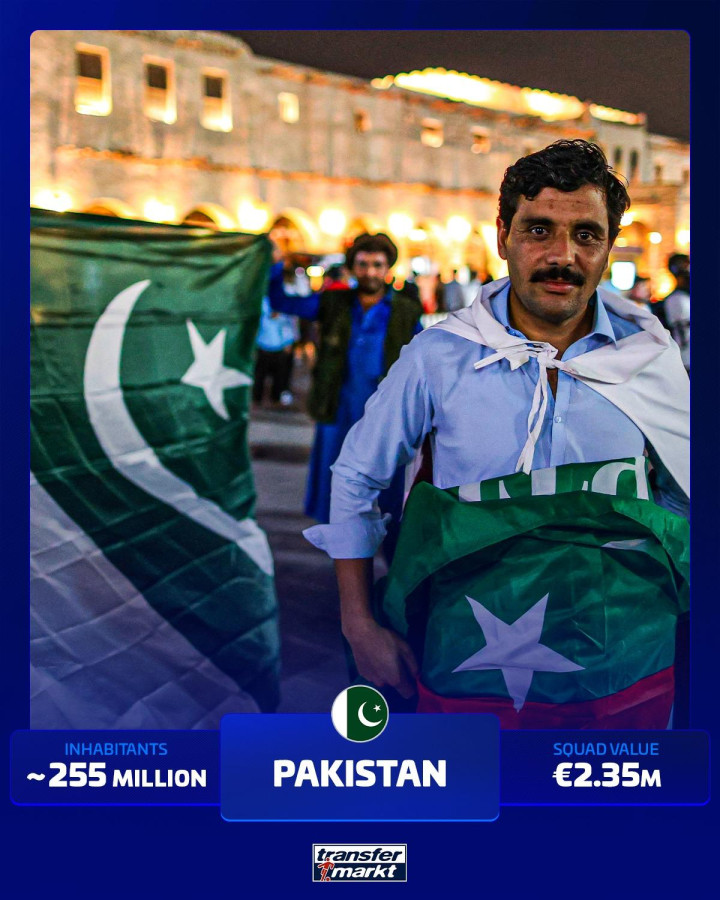从未投入寰宇杯球队东说念主口名次榜(东说念主口数目为估值):