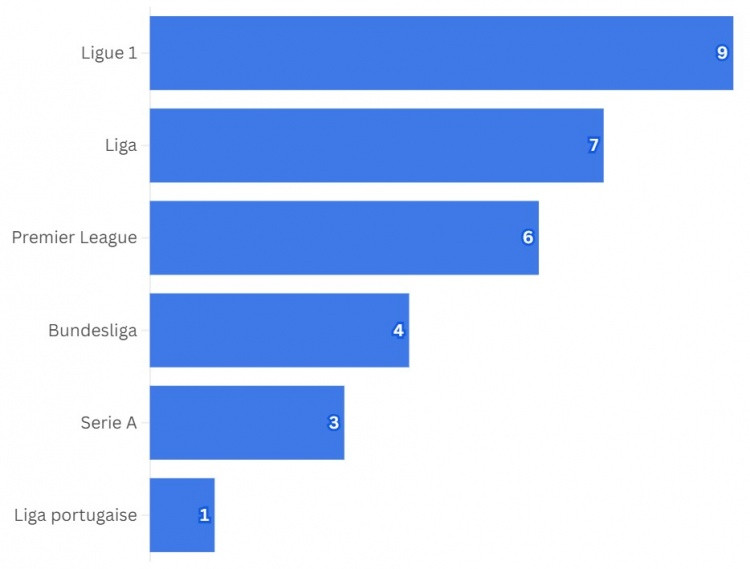 自1956年首届金球奖以来,这是法国联赛初次在提名者中领有最多的球员。巴黎圣日耳曼的9名球员使法甲卓越了西甲(两个俱乐部)和英超(四个俱乐部)的提名东谈主数。