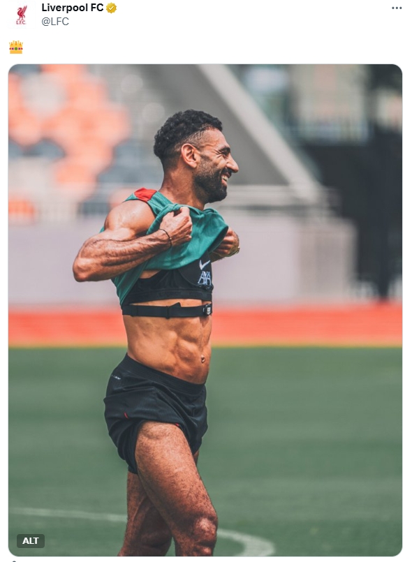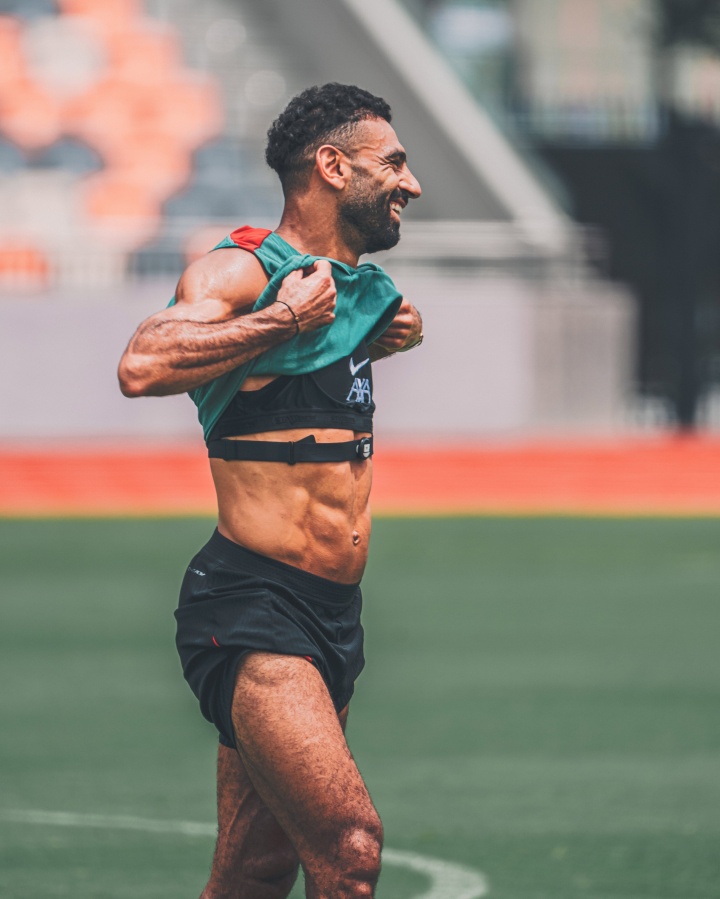 逆天身材!33岁萨拉赫掀翻球衣浮现腹肌,身材建壮&赤军最粗大腿