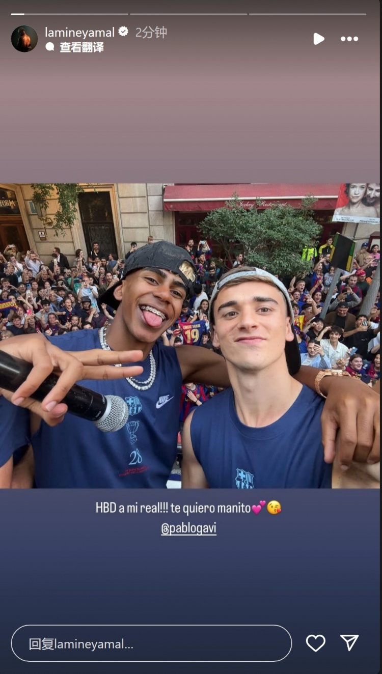 8月5日讯 亚马尔更新社媒动态,祝队友加维诞辰抖擞。