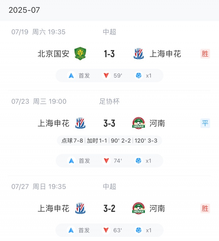 07月27日讯 本日中超第18轮,申花3-2校服河南,现在6分领跑积分榜。新援阿苏埃施展拉风,本场再获一粒进球,加盟中超于今仅出场3场比赛,为申花3场比赛获得场均1粒进球。