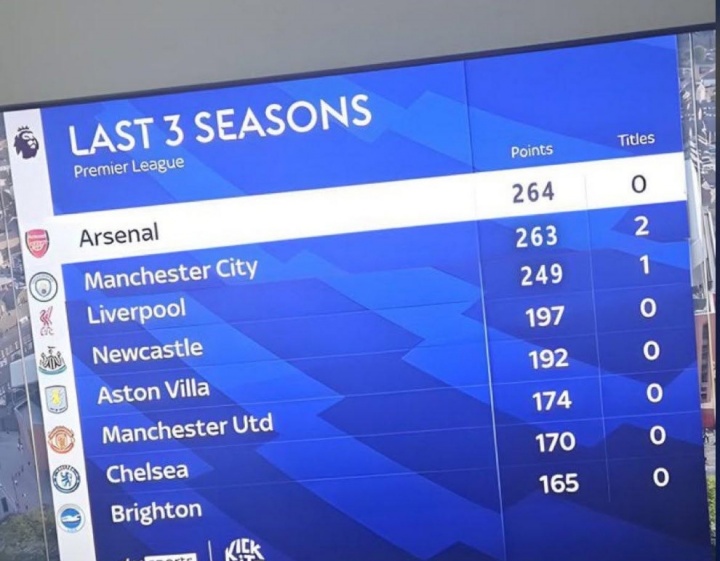 近3赛季的英超积分和冠军数