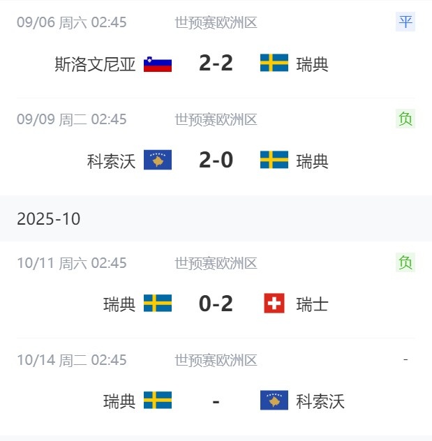 10月11日讯 世初赛欧洲区小组赛B组第3轮,瑞典主场0-2不敌瑞士,遇到三场不堪,当前小组垫底,出线告急。