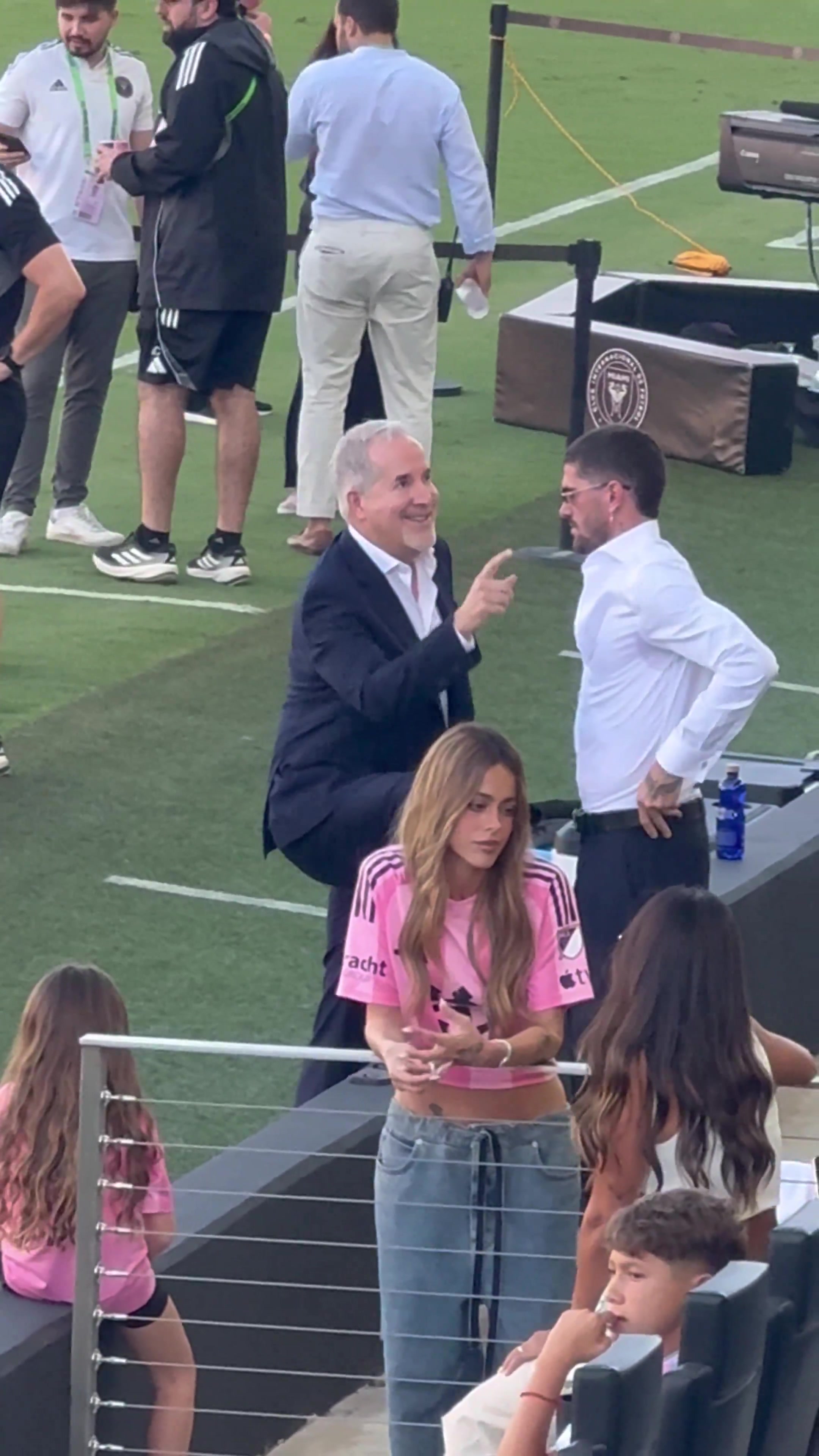 而德保罗的女友蒂尼-斯托塞尔也身穿德保罗的迈阿密球衣,来到了迈阿密主场,还与梅西内助安东内拉聊天。