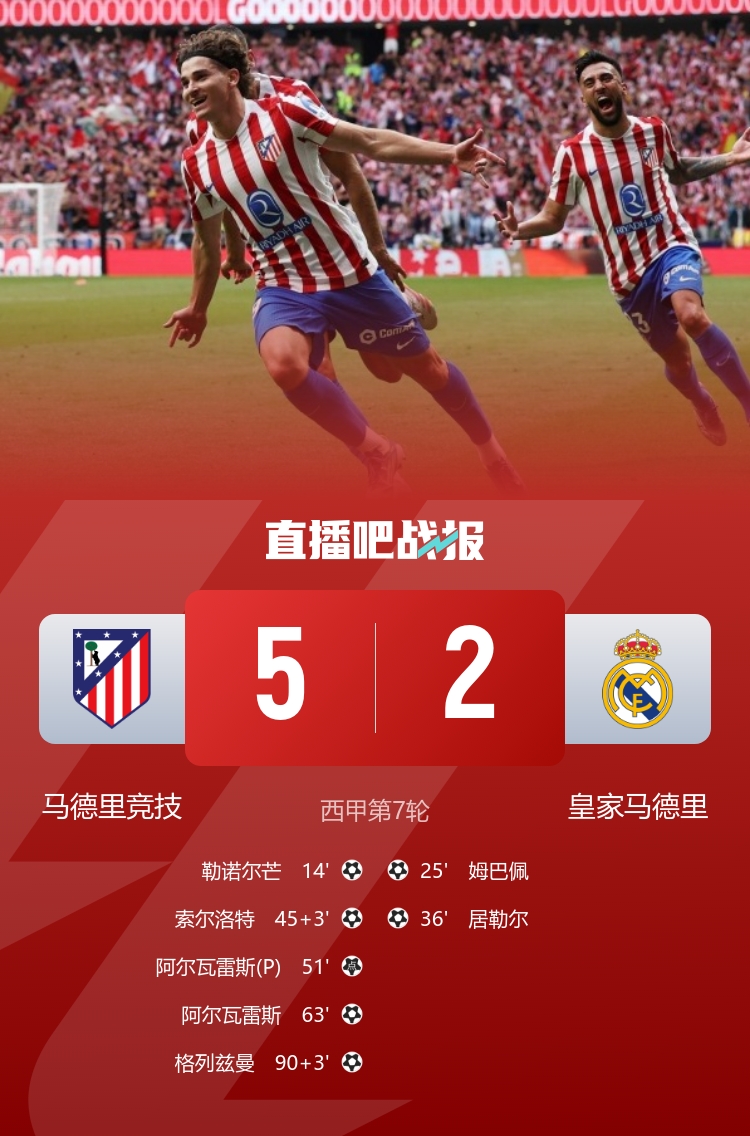 阿斯报点评这即是“魄力”问题。皇马跑动最多的东谈主是巴尔韦德,距离为10.03公里,然则马竞有足足5东谈主比巴尔韦德还高,差异是:科克12.6公里、朱利亚诺-西蒙尼11.2公里、巴里奥斯11.1公里、阿尔瓦雷斯10.3公里和冈萨雷斯10.5公里。