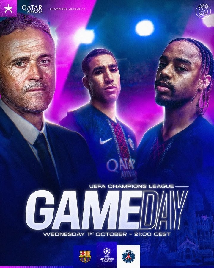 巴黎官推为海报配文:“在巴塞罗那的欧冠之夜!”