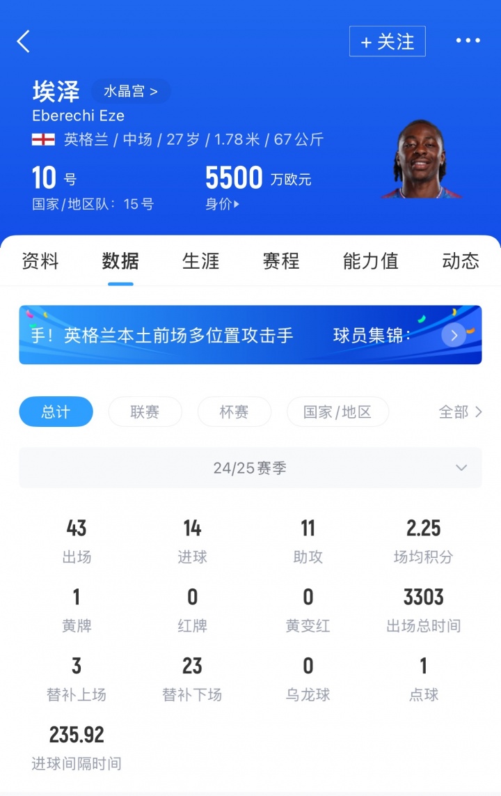 水晶宫知谈阿森纳对埃泽感酷好,埃泽也相称抖擞加盟阿森纳,枪手的邀请对球员来说似乎难以完了。