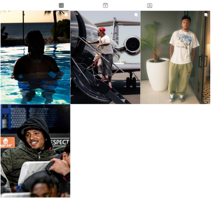 在桑乔的ins上,与足球洽商的社媒险些仍是一王人被阴私,只留住了一张切尔西时分坐在替补席上的相片,以及三张生涯照。