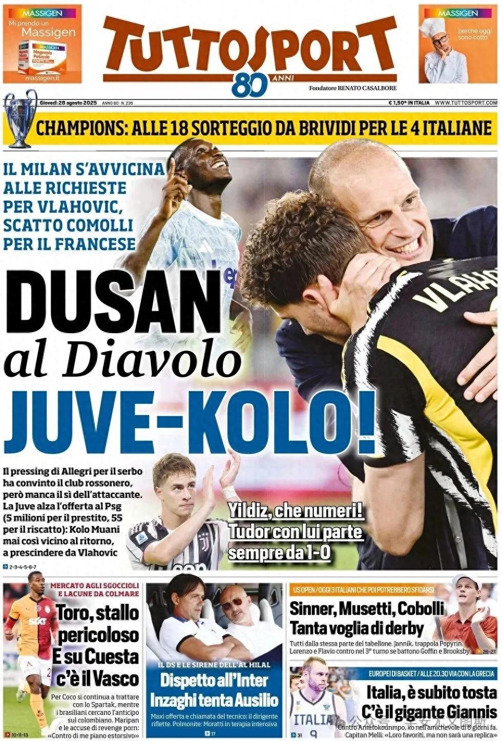 意大利转会巨匠佩杜拉报说念,尤文图斯决定以6000万欧元的价钱锁定法国先锋科洛-穆阿尼,但塞尔维亚球星弗拉霍维奇的转会还需要AC米兰和阿莱格里就计策收尾共鸣。