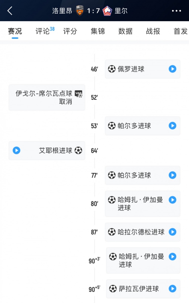 8月31日讯 法甲第3轮,里尔客场7-1大捷洛里昂,收成联赛两连胜。