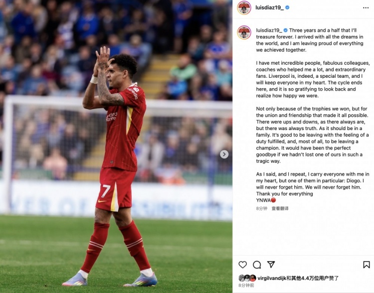 要是不是咱们以如斯悼念的口头失去了一位成员,这将是最完好意思的告别。正如我曾说过的,我会把每一个东说念主齐带在心里,但有一个东说念主尤为格外:迪奥戈-若塔。我永远不会健忘他,咱们齐不会。谢谢你们给以我的一切。