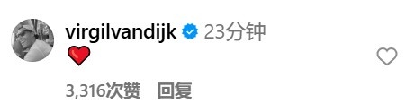 利物浦中卫范迪克点赞这条动态,同期在有计划区发了一个爱心的色彩标志。