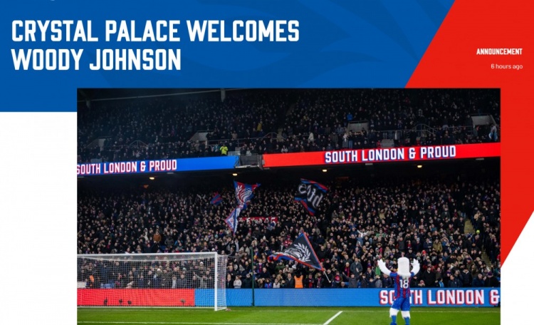7月25日讯 水晶宫足球俱乐部欢笑地晓喻,伍迪-约翰逊已完成对Eagle Football所捏俱乐部股份的收购。